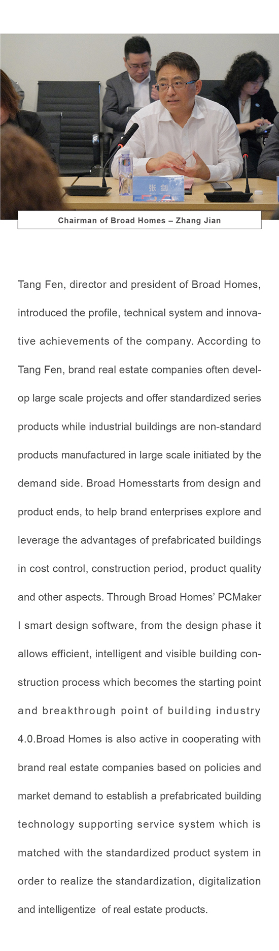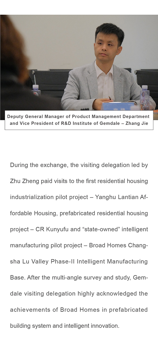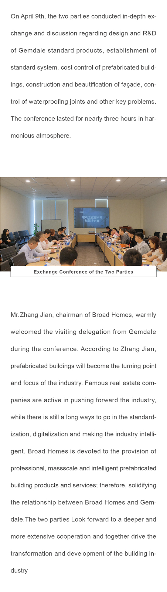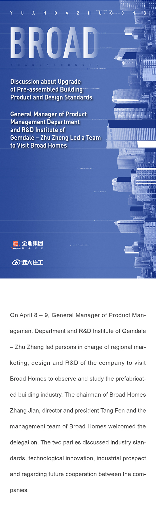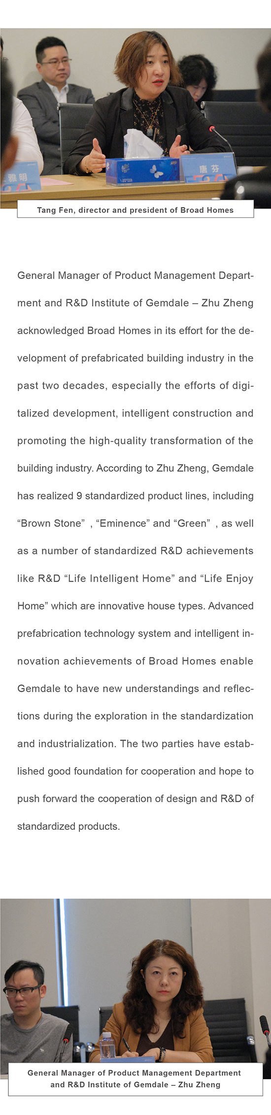Discussion about Upgrade of Pre-assembled Building Product and Design Standards General Manager of Product Management Department and R&D Institute of Gemdale – Zhu Zheng Led a Team to Visit Broad Homes
