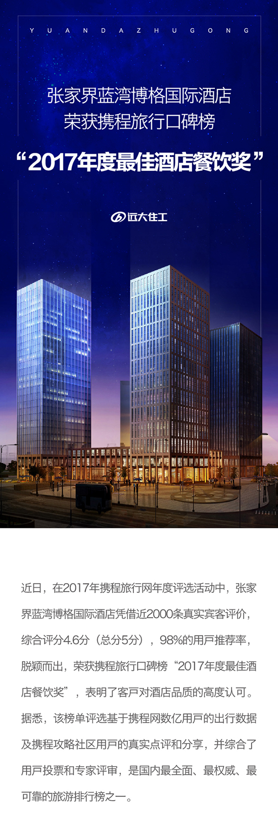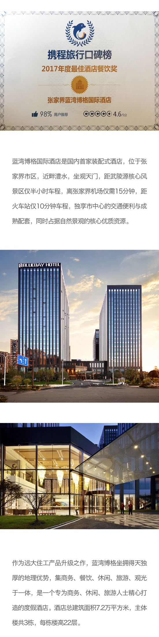 張家界藍灣博格國際酒店榮獲攜程旅行口碑榜 “2017年度最佳酒店餐飲獎”