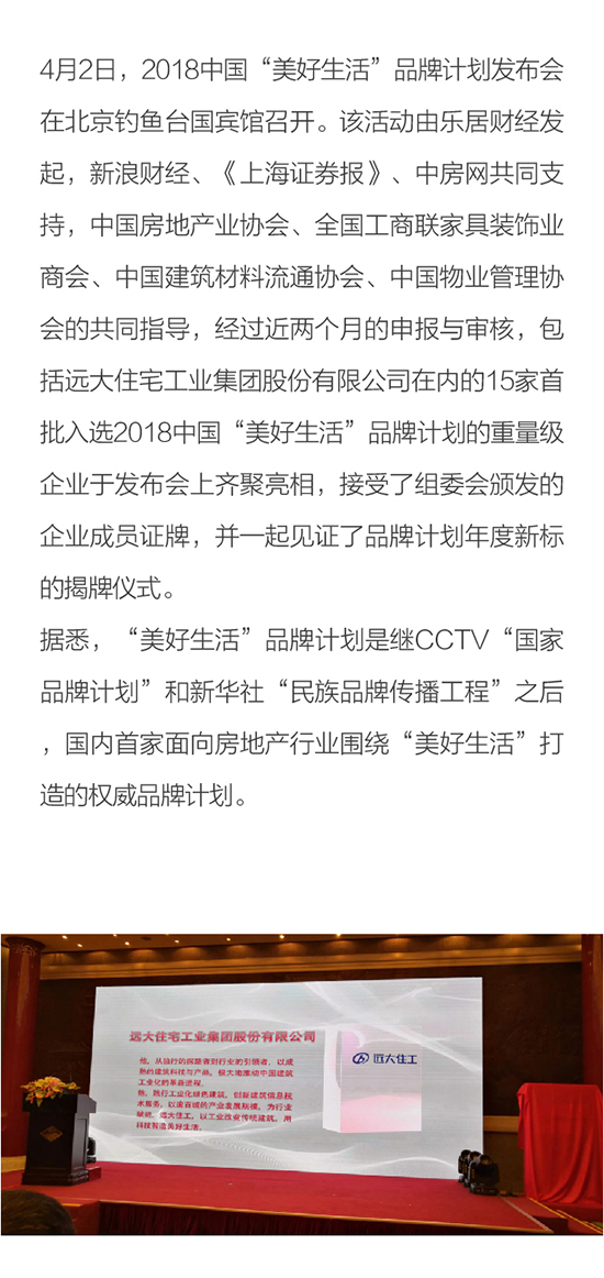 遠大住工首批入選2018中國“美好生活”品牌計劃