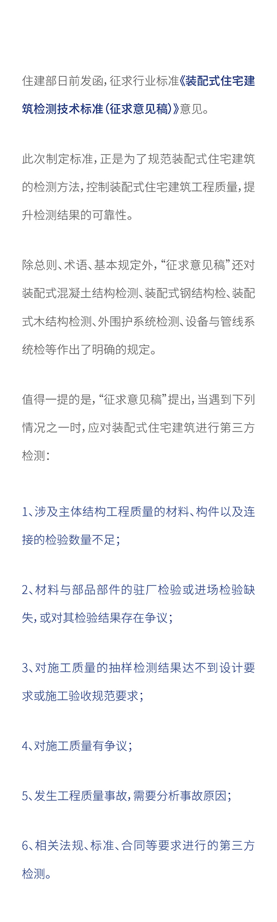 裝配式住宅建筑將出臺檢測標準 住建部下發“征求意見稿”