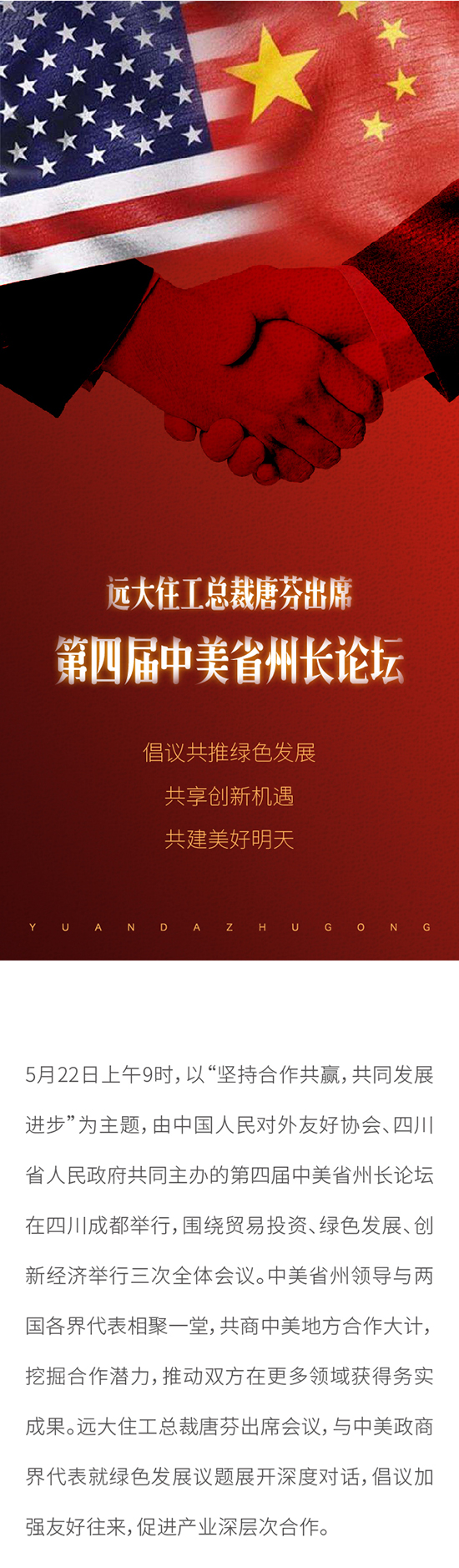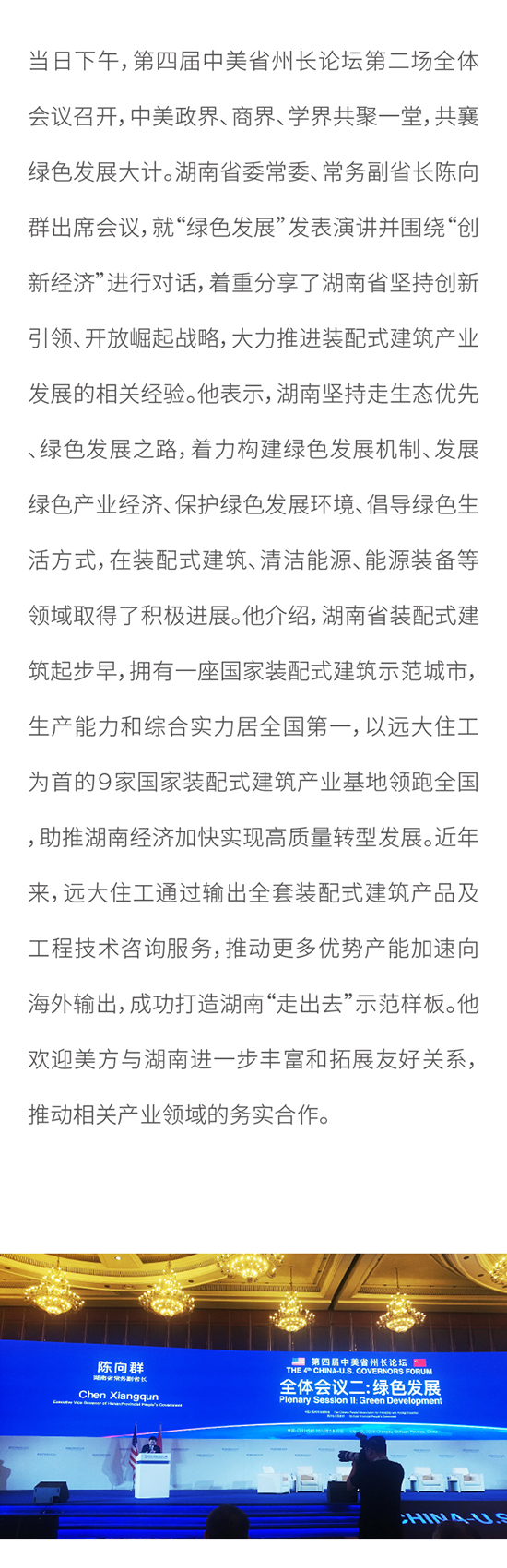 遠大住工總裁唐芬出席第四屆中美省州長論壇 倡議共推綠色發展 共享創新機遇 共建美好明天