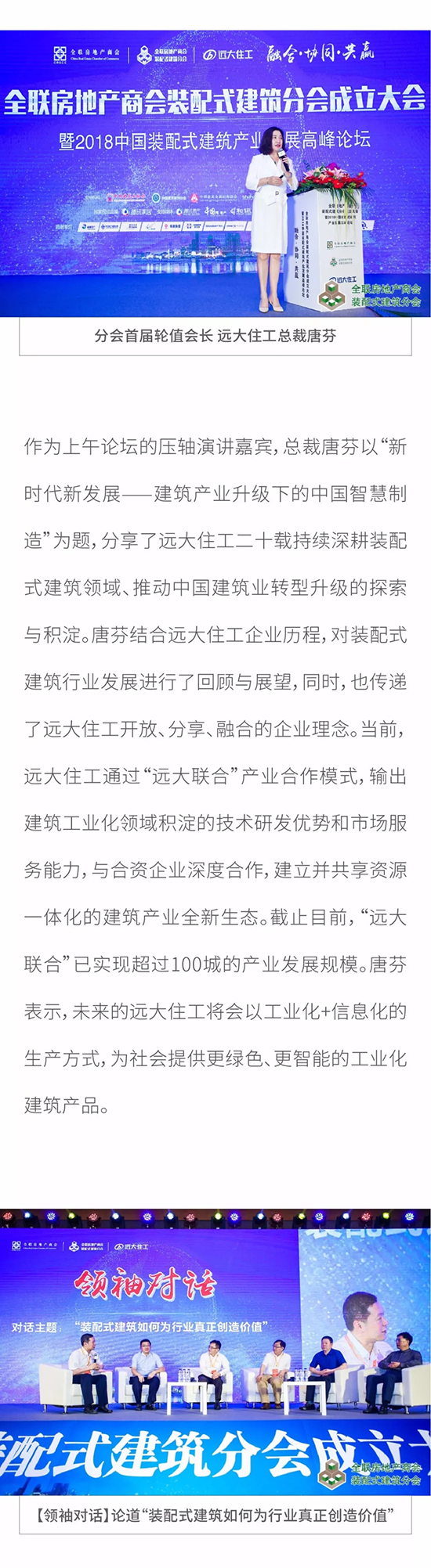 全聯(lián)房地產(chǎn)商會(huì)裝配式建筑分會(huì)成立大會(huì)盛大召開 遠(yuǎn)大住工總裁唐芬當(dāng)選首屆輪值會(huì)長(zhǎng)