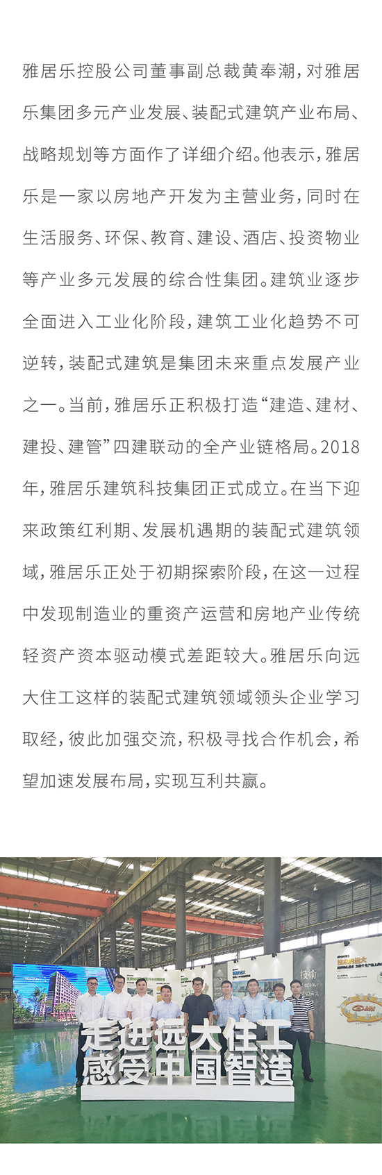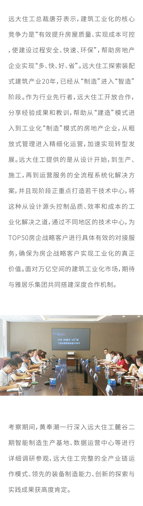 深化合作 共謀發展 雅居樂董事副總裁黃奉潮一行赴遠大住工參觀考察