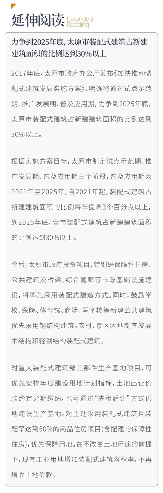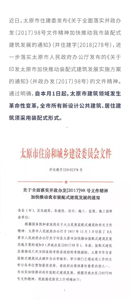 本月1日起,太原市所有新設計公共建筑、居住建筑須采用裝配式建筑
