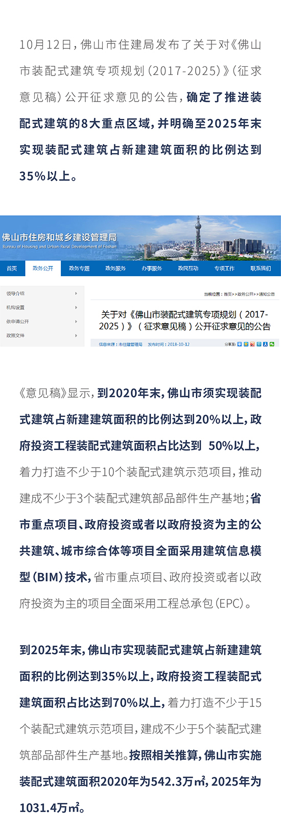2020年達542.3萬㎡!佛山這8大片區將重點推進裝配式建筑