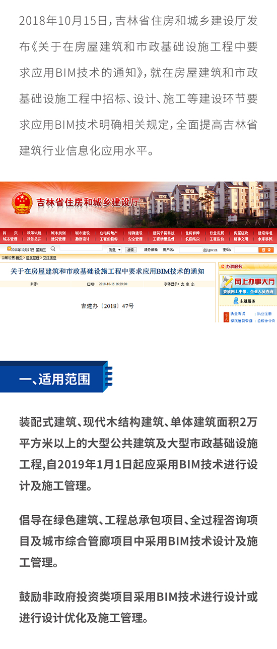 最新!吉林省住建廳出臺 《關于在房屋建筑和市政基礎設施工程中要求應用BIM技術的通知》