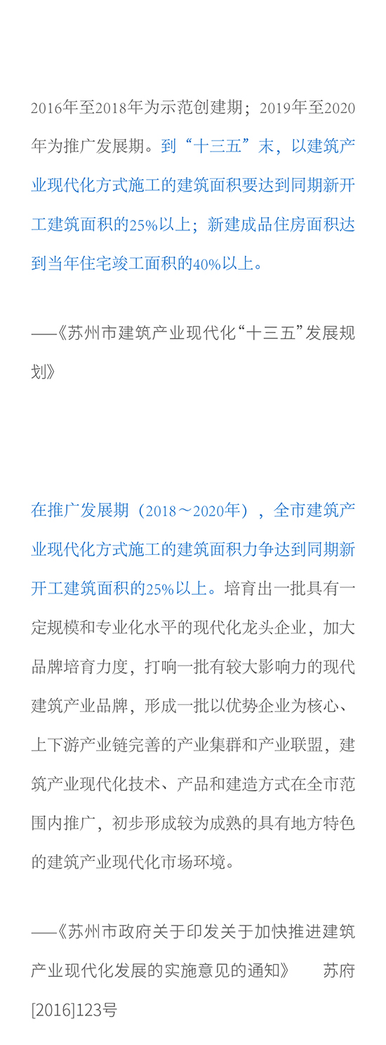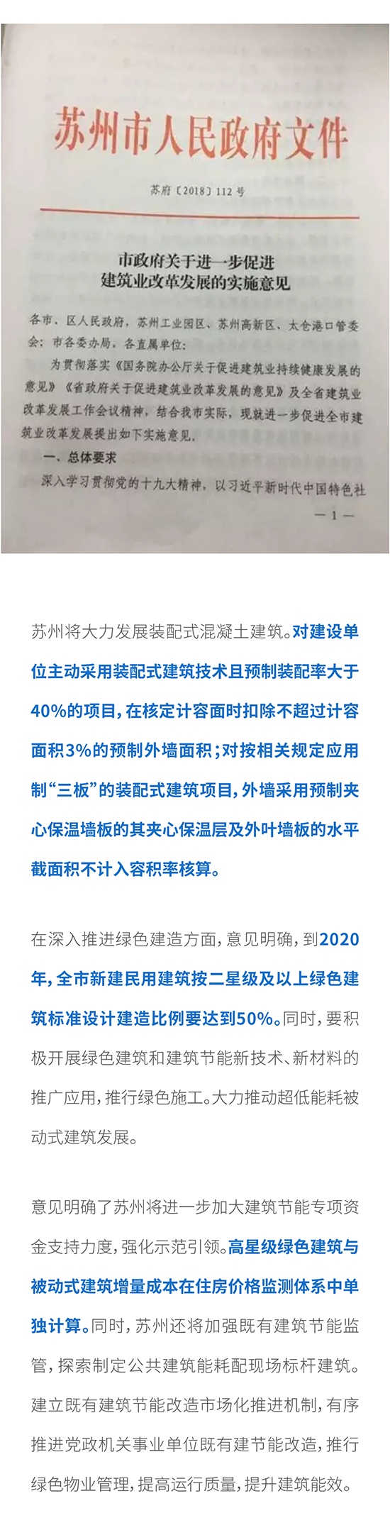蘇州市人民政府出臺《關于進一步促進建設業改革發展的實施意見》: 至2020年,全市裝配式建筑占新建建筑面積比例要達到30%