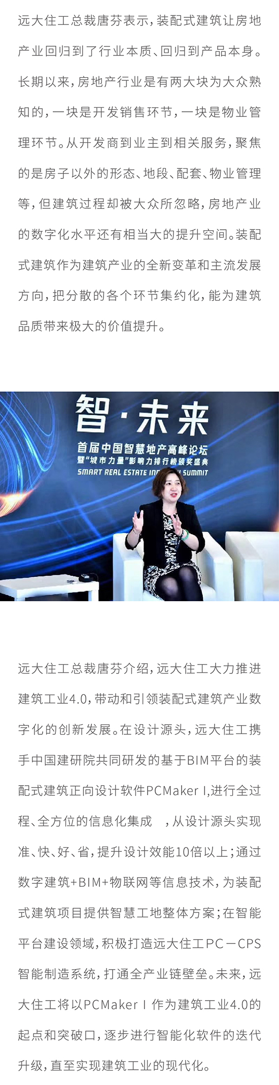 首屆中國智慧地產高峰論壇在京舉行 遠大住工總裁唐芬獲頒“中國地產數字化推動力人物”