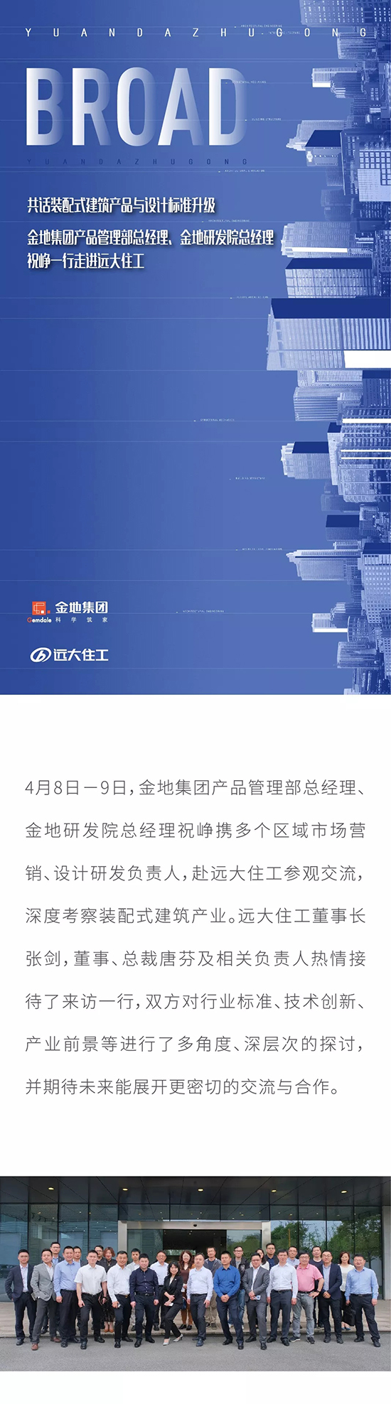 共話裝配式建筑產品與設計標準升級 金地集團產品管理部總經理、金地研發院總經理祝崢一行走進遠大住工